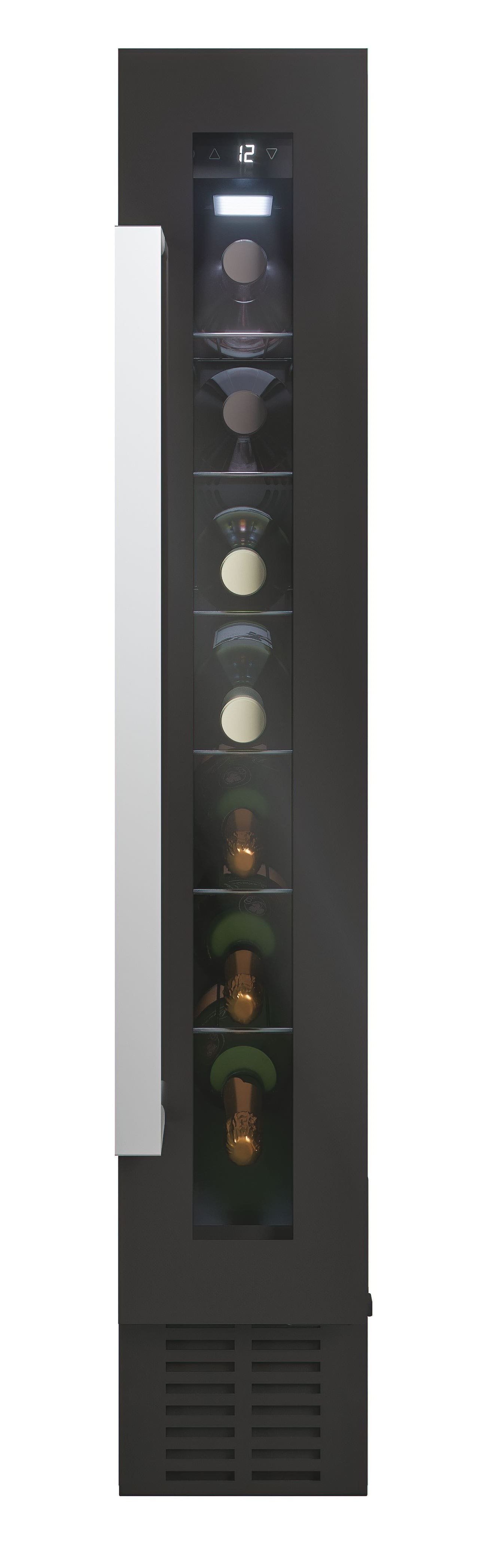 Vstavaná vinotéka - Jednozónová, ventilované chladenie, elektronické ovládanie, displej, LED osvetlenie, 6 kovových políc, tichý chod - antivibračný systém