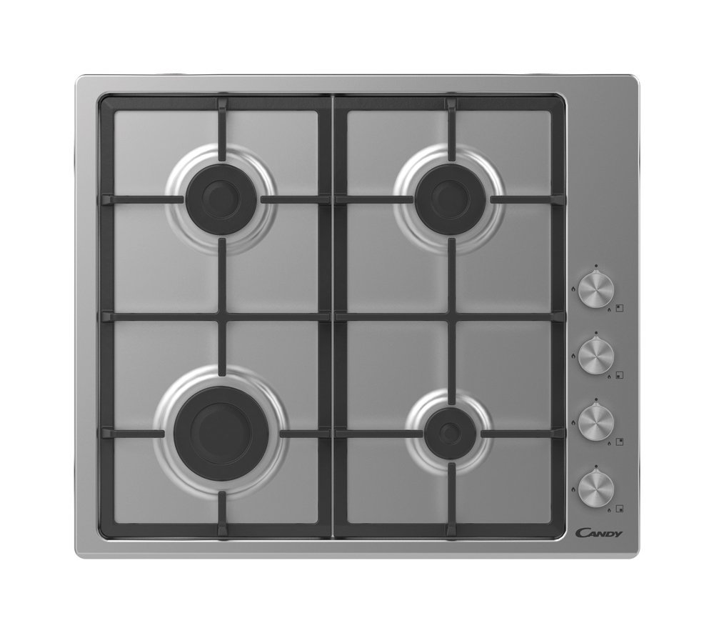 : CandyVstavaná plynová doska šírky 60 cm - 4 horáky, elektrické zapaľovanie v gombíku, bezpečnostná poistka plynu, liatinové podpery