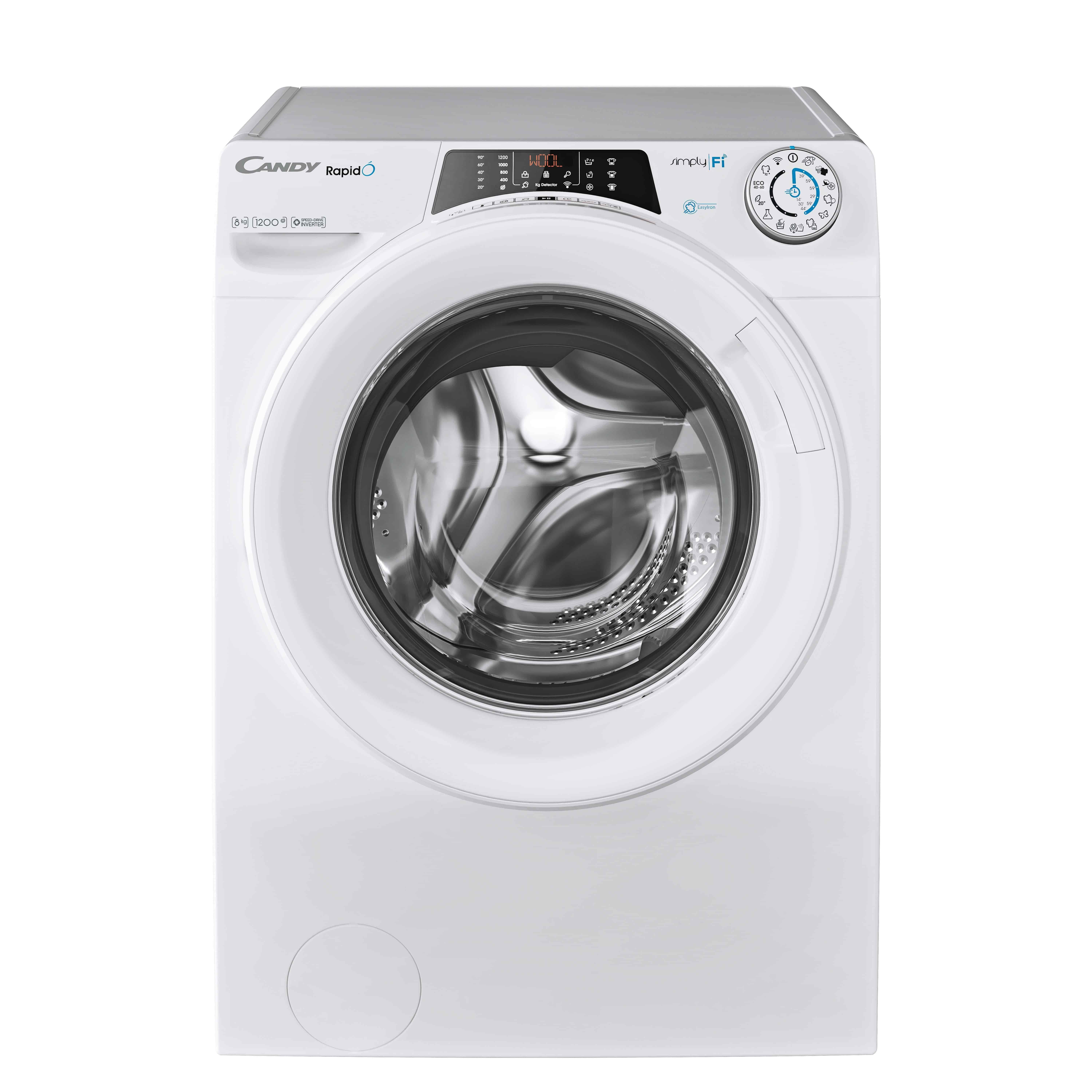 : CandySpredu plnená automatická pračka RapidÓ - 9 rýchlych cyklov, Wifi + Bluetooth, Snap & Wash, para, dotykový displej s češtinou, invertorový motor Speed Drive